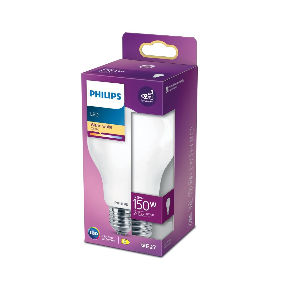 Philips energieffektiva LED-lampor ger ett vackert, varmvitt ljus och har en extra lång livslängd som leder till omedelbara energibesparingar. Med sin rena och eleganta design är den här lampan det perfekta alternativet när du vill byta ut dina frostade standardlampor.